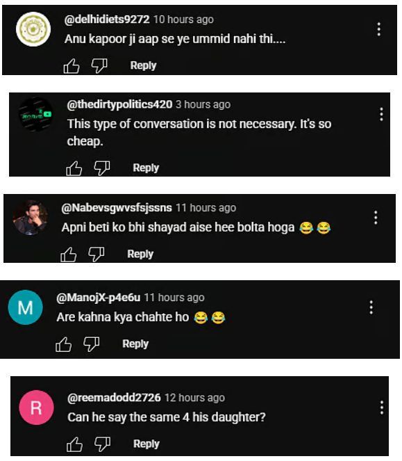 तथापि, नेटिझन्सने अन्नूला त्याच्या अश्लील टिप्पण्यांसाठी, स्त्रियांच्या विटंबनाची मानसिकता आणि महिलांच्या खर्चावर विकृत केल्याचा दोष दिला.