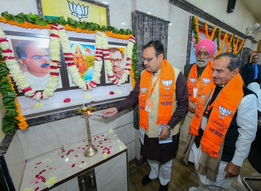 प्रदेश कार्यालय जयपूर येथे भाजप राजस्थानच्या नवनिर्मित कार्यकारिणीची बैठक मुख्यमंत्री भजनलाल शर्मा यांनी अधिकाऱ्यांना संघटनात्मक मार्गदर्शन केले.