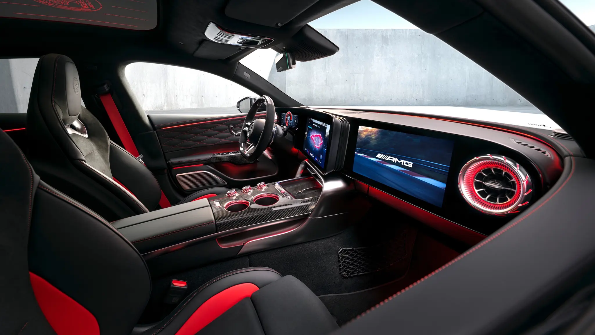 मर्सिडीज-एएमजीने केबिनमधील भौतिक बटणांची संख्या लक्षणीयरीत्या कमी केली आहे. उदाहरणार्थ, हवामान नियंत्रणे आता मध्यवर्ती टचस्क्रीनमध्ये एकत्रित केली आहेत.
