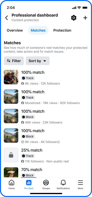 निर्माते त्यांच्या फीड, व्यावसायिक डॅशबोर्ड आणि प्रोफाइलमध्ये सूचना शोधून ते पात्र आहेत का ते पाहू शकतात किंवा “सामग्री संरक्षण” अंतर्गत, त्यांच्या व्यावसायिक डॅशबोर्डवरून त्यांना टूलमध्ये प्रवेश आहे का ते तपासू शकतात. ते प्रवेशासाठी अर्ज देखील करू शकतात फेसबुकच्या वेबसाइटवर.