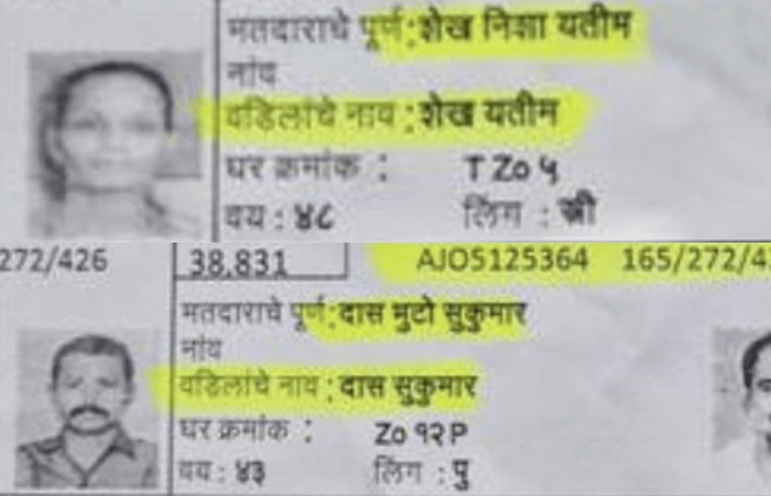 मनसेने शेअर केलेल्या मतदार यादीच्या फोटोत मनसेच्याच एका पदाधिकाऱ्याचा फोटो असून त्याच्या फोटो समोर चक्क दास मुटो सुकुमार असे बंगाली नाव लिहण्यात आले आहे. तर याच यादीत मनसे पदाधिकाऱ्याच्या बहिणीचा देखील फोटो असून तिच्या फोटो समोर शेख न्शा यालीम असे मुस्लीम नाव लिहण्यात आले आहे.