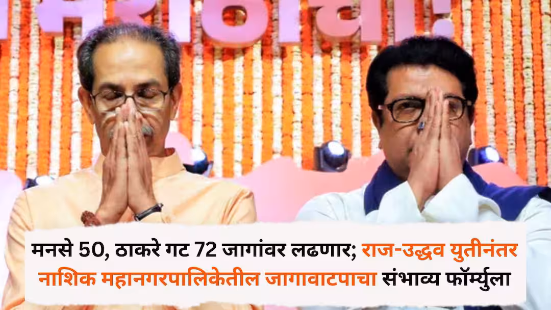 मनसे 50, ठाकरे गट 72 जागांवर लढणार; राज-उद्धव युतीनंतर नाशिक महानगरपालिकेतील जागावाटपाचा संभाव्