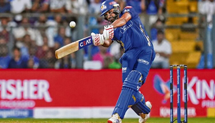 मुंबई इंडियन्सचा रोहित शर्मा इंडियन प्रीमियर लीग (आयपीएल) 2026 मध्ये कोलकाता नाईट रायडर्स विरुद्धच्या T20 सामन्यादरम्यान एक शॉट खेळत आहे.