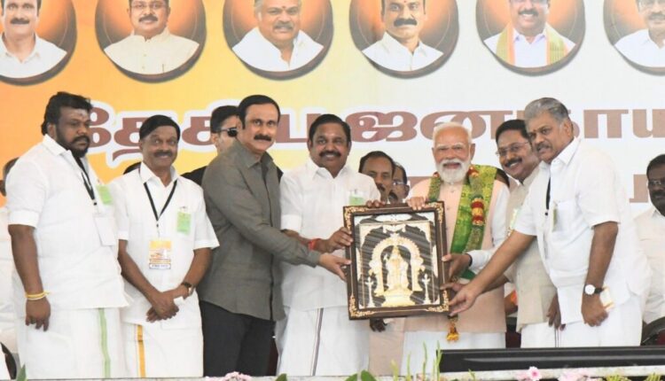 2026 च्या विधानसभा निवडणुकीपूर्वी तामिळनाडूमध्ये राष्ट्रीय लोकशाही आघाडी (NDA) ने आकार घेतल्यानंतर पहिल्या निवडणूक रॅलीमध्ये, पंतप्रधान नरेंद्र मोदी यांनी गटामध्ये एकता प्रक्षेपित करण्यासाठी एकत्रित प्रयत्न केले.