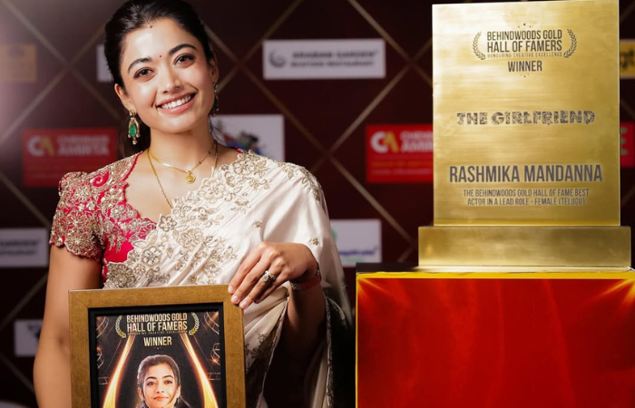 आपल्या दिलखेचक हास्य आणि जबरदस्त अभिनयाने प्रेक्षकांच्या मनावर राज्य करणारी ‘नॅशनल क्रश’ रश्मिका मंदाना सध्या सोशल मीडियावर कायम चर्चेत असते. ही दाक्षिणात्य सुंदरी केवळ अभिनयातच नाही, तर फॅशनमध्येही आघाडीवर आहे. नुकत्याच झालेल्या एका पुरस्कार सोहळ्यात रश्मिकाने परिधान केलेल्या पांढऱ्या भरजरी साडीतील फोटोंनी इंटरनेटचा पारा वाढवला आहे. ‘बिहाइंडवूड्स गोल्ड हॉल ऑफ फेम’मध्ये सर्वोत्कृष्ट अभिनेत्रीचा पुरस्कार पटकावल्यानंतर रश्मिकाचा आनंद गगनात मावेनासा झाला आहे. या खास सोहळ्यातील तिचे ग्लॅमरस फोटो तिने शेअर केले आहेत. शिवाय तिचे सुंदर फोटो शेअर करत, रश्मिकाने एका भावनिक नोटमधून आपल्या भावना व्यक्त केल्या: “भूमासाठी मला जे प्रेम मिळालं आहे ते खूप खास आहे.. ते शब्दांत मांडता येत नाही.. ज्यांनी माझ्यावर विश्वास ठेवला त्या सर्वांचे, विशेषतः @rahulr_23.. धन्यवाद!! मी नेहमीच तुमची आभारी राहीन! आणि मी तुम्हाला वचन देते की ही तर फक्त सुरुवात आहे.” असे म्हटले आहे.