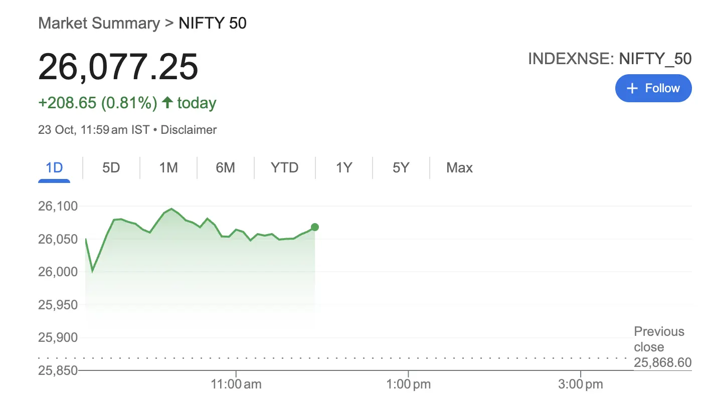 गुरुवारी सकाळी शेअर बाजाराने जोरदार सुरुवात केली. सेन्सेक्स 787.90 अंकांनी वाढून 85,214.24 वर पोहोचला आणि निफ्टी 215.30 अंकांनी वाढून 26,088.50 वर पोहोचला आहे.