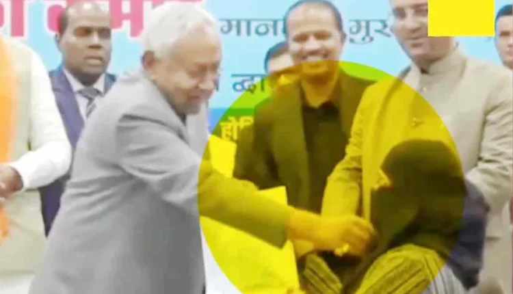 पाटणा: बिहारचे मुख्यमंत्री नितीश कुमार यांच्याबाबत आणखी एक नवा वाद निर्माण झाला आहे. नियुक्ती पत्रांच्या वितरणादरम्यान एका महिला मुस्लिम डॉक्टरने तिचा चेहरा मोजण्याचा प्रयत्न केल्याचा आरोप आरजेडी आणि काँग्रेसने केला आहे. या संपूर्ण प्रकरणाशी संबंधित व्हिडिओ सोशल मीडियावर मोठ्या प्रमाणात व्हायरल होत आहे, ज्यावर विरोधकांनी तीव्र प्रतिक्रिया दिल्या आहेत.