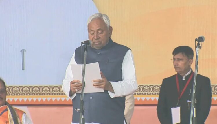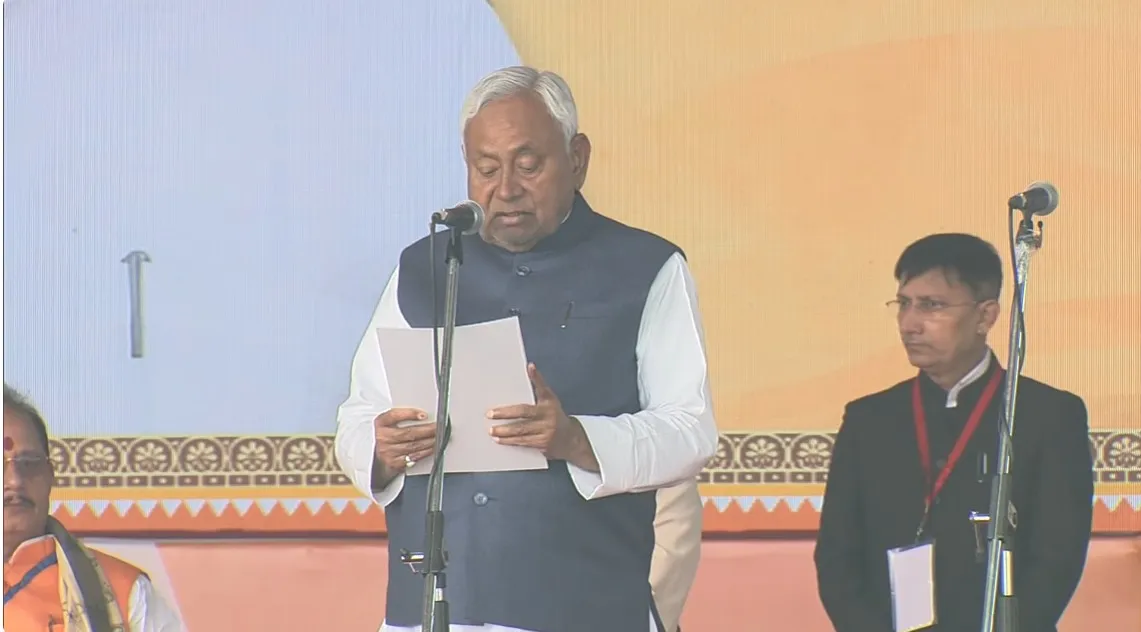 पाटणा: बिहार विधानसभा निवडणुकीत प्रचंड बहुमत मिळाल्यानंतर गुरुवारी एनडीएचे सरकार स्थापन झाले. नितीश कुमार यांनी 10व्यांदा बिहारच्या मुख्यमंत्रीपदाची शपथ घेतली. सम्राट चौधरी आणि विजय कुमार सिन्हा यांनी पुन्हा एकदा उपमुख्यमंत्रिपदाची शपथ घेतली. गांधी मैदानावर आयोजित भव्य शपथविधी सोहळ्याला पंतप्रधान नरेंद्र मोदी, गृहमंत्री अमित शहा यांच्यासह एनडीए शासित राज्यांचे मुख्यमंत्री आणि उपमुख्यमंत्री उपस्थित होते.