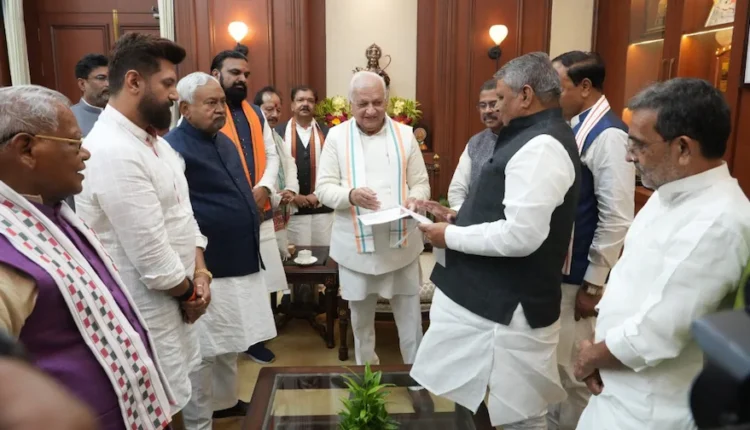 एनडीएच्या विधिमंडळ पक्षाच्या नेतेपदी निवड झाल्यानंतर नितीश कुमार यांनी सर्वप्रथम राजभवन गाठून राज्यपाल आरिफ मोहम्मद खान यांच्याकडे राजीनामा सुपूर्द केला. त्यानंतर त्यांनी नवे सरकार स्थापन करण्याचा दावा केला. नितीश कुमार यांच्यासोबत उपमुख्यमंत्री सम्राट चौधरी, विजय सिन्हा आणि चिराग पासवान यांच्यासह एनडीएचे अनेक बडे नेते उपस्थित होते. भाजपचे अध्यक्ष दिलीप जसवाल यांनी सांगितले की, मंत्रिमंडळ स्थापनेचा निर्णय मुख्यमंत्री नितीश कुमारच घेतील. पंतप्रधान नरेंद्र मोदींसह एनडीएचे अनेक बडे नेते गुरुवारी मुख्यमंत्री नितीश कुमार यांच्या शपथविधी कार्यक्रमाला उपस्थित राहणार आहेत.