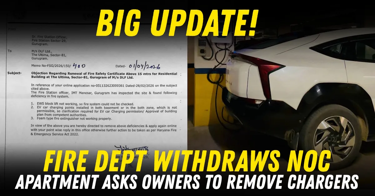 यावेळी, ही केवळ सावधगिरीची विनंती किंवा सूचना नाही. हे आता एक अनिवार्य निर्देश बनले आहे, ज्या रहिवाशांकडे ईव्ही आहेत आणि तळघरांमध्ये चार्जर बसवले आहेत त्यांना पालन करावे लागेल. हरियाणा अग्निशमन विभागाने गंभीर आक्षेप घेतल्यानंतर आणि इमारतीसाठी फायर एनओसी (ना हरकत प्रमाणपत्र) नूतनीकरण रोखल्यानंतर हा निर्णय घेण्यात आला आहे.