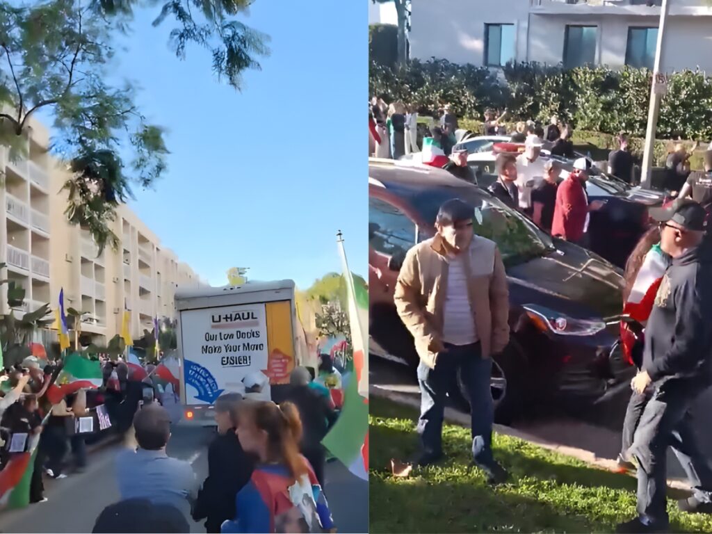 इराण निदर्शने: रविवारी इराणी लोकांच्या समर्थनार्थ लॉस एंजेलिसच्या मोर्चादरम्यान निदर्शकांच्या गर्दीतून यू-हॉल ट्रक चालवताना दिसला, ज्यामुळे वेस्टवुड परिसरात गोंधळाचे दृश्य निर्माण झाले.