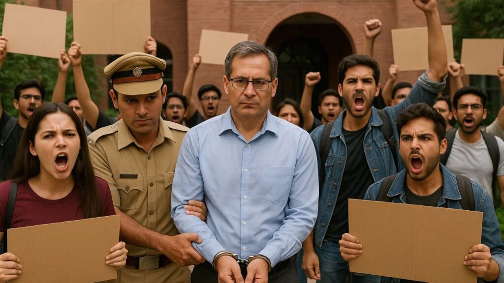 अटकेच्या काही तास आधी कॅम्पसमध्ये विद्यार्थ्यांची निदर्शने सुरू झाली होती. विद्यार्थ्यांनी हातात फलक घेऊन आरोपींवर तात्काळ कारवाई करण्याची मागणी केली होती. ते म्हणाले की, शिक्षक विद्यार्थिनींचा सतत मानसिक आणि शारीरिक छळ करत होता, मात्र संस्था प्रशासनाने वेळीच कारवाई केली नाही. विद्यार्थ्यांनी आरोप केला की त्याने अंतर्गत मूल्यांकनात चांगले गुण आणि उच्च गुणांच्या बदल्यात लैंगिक अनुकूलतेची मागणी केली, ज्यामुळे कॅम्पसमध्ये भीती आणि असुरक्षिततेचे वातावरण निर्माण झाले.