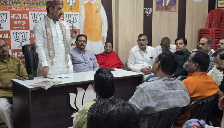 कानपूर, 04 नोव्हेंबर (वाचा). मंगळवारी, उत्तर प्रदेशातील कानपूर जिल्ह्यातील नवीन मार्केट येथे असलेल्या भारतीय जनता पक्षाच्या उत्तर जिल्हा कार्यालयात वंदे मातरम गीताला 150 वर्षे पूर्ण झाल्याबद्दल सामूहिकरित्या गाण्यासाठी तयारीची बैठक झाली. अशी माहिती भाजप उत्तर जिल्हाध्यक्ष अनिल दीक्षित यांनी दिली.