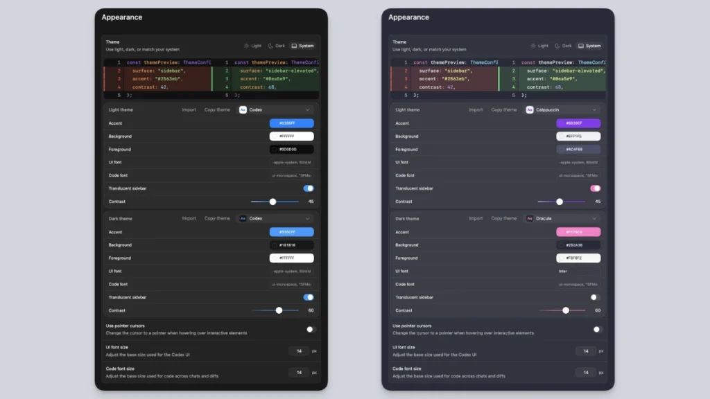 या वैयक्तिकरण वैशिष्ट्यांसह, कोडेक्स हे इतर आधुनिक विकसक साधनांसारखे बनते जे विस्तृत सानुकूलित पर्याय प्रदान करतात.