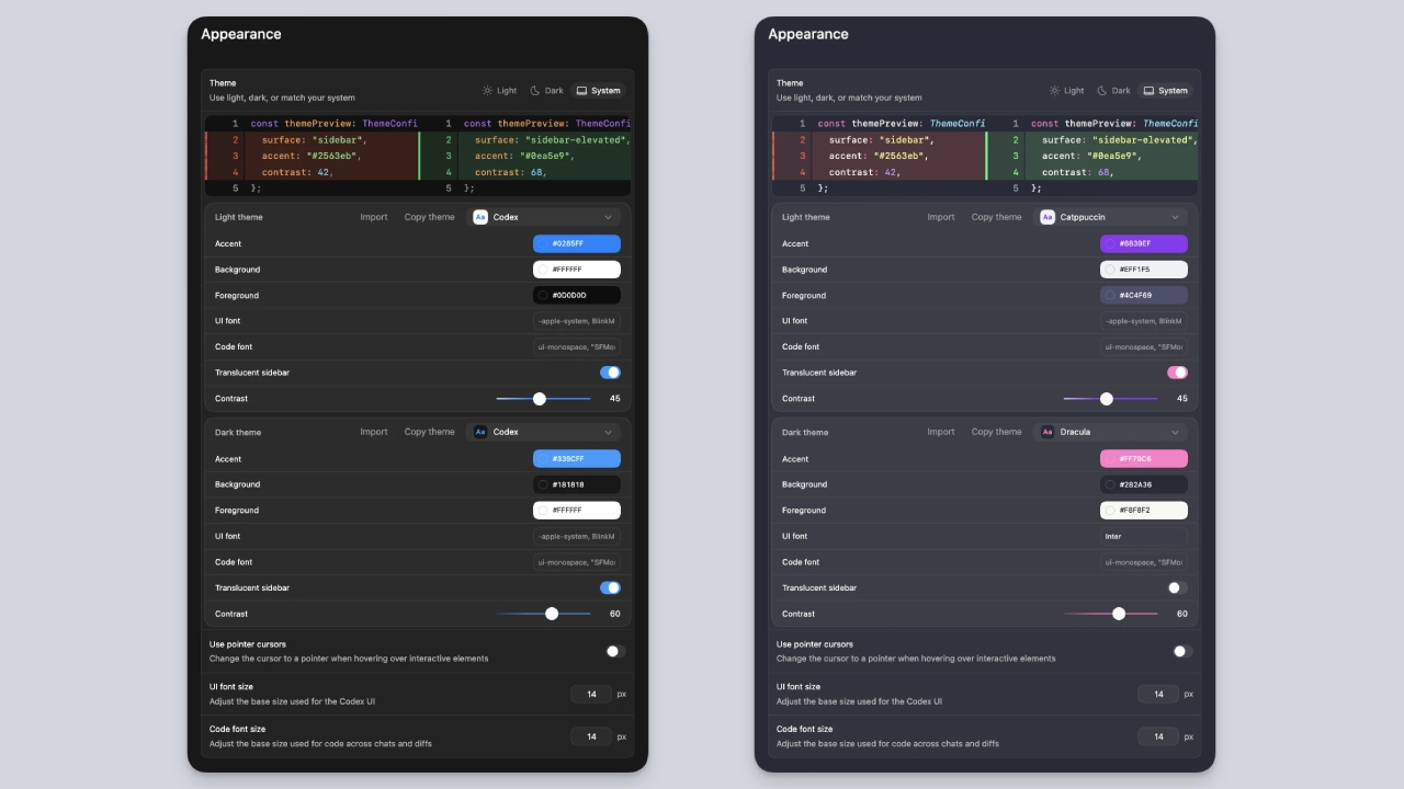सेटिंग्ज पॅनेलची सानुकूलित क्षमता विकासकांना समर्थन देण्यासाठी आहे कारण ते त्यांच्या वैयक्तिक वर्कफ्लोमध्ये अधिक चांगल्या प्रकारे फिट होण्यासाठी त्यांचे कोडेक्स वातावरण समायोजित करतात.