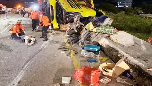 इंडोनेशियामध्ये एक मोठा रस्ता अपघात झाला आहे. एपी रिपोर्टनुसार, रविवारी आणि सोमवारी मध्यरात्री इंडोनेशियाच्या मुख्य बेट जावा येथे प्रवासी बस अपघातात किमान 16 लोकांचा मृत्यू झाला. शोध आणि बचाव एजन्सीचे प्रमुख बुड्योनो म्हणाले की, 34 जणांना घेऊन जात असलेल्या बसने टोल रोडवर नियंत्रण गमावले आणि काँक्रीटच्या अडथळ्यावर कोसळली. त्यांनी सांगितले की, ही बस देशाची राजधानी जकार्ता येथून देशाच्या प्राचीन शाही शहर योग्याकार्ताकडे जात होती. त्यानंतर मध्य जावामधील सेमरंग शहरातील क्राप्याक टोल रोडवरील वक्र एक्झिट रॅम्पमध्ये प्रवेश करताना तो उलटला.