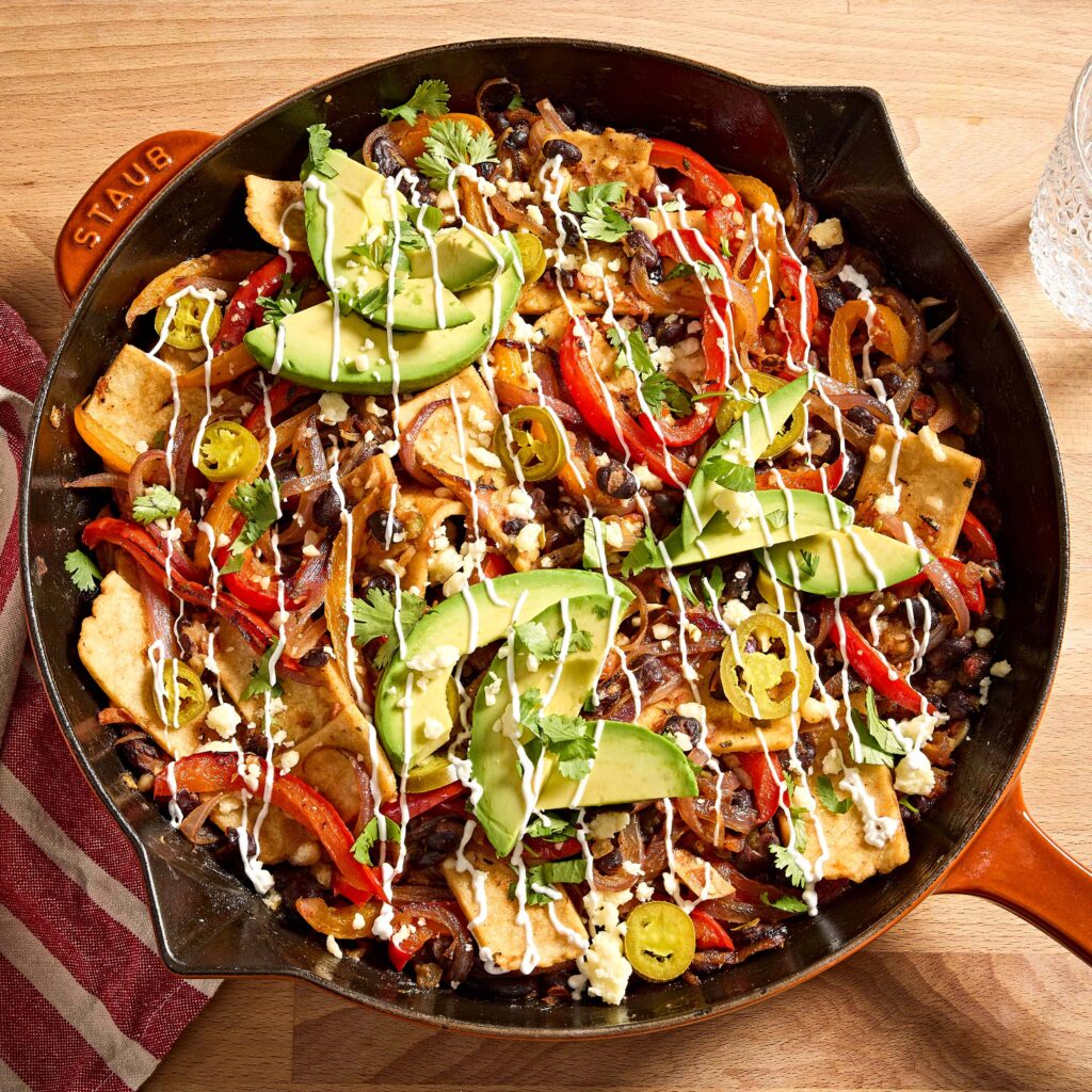 ही वन-पॅन ब्लॅक बीन फजिता कॅसरोल ही आठवड्याच्या रात्रीच्या जेवणाची सोपी कल्पना आहे. कॉर्न टॉर्टिलासच्या पट्ट्या सॉसी चांगुलपणा भिजवतात, कोटिजा चीजच्या शिंपडाखाली बेक करताना कोमल होतात. त्यावर मलईदार एवोकॅडो, आंबट मलईचा एक तुकडा आणि काही ताजी कोथिंबीर एका तासाभरात एकत्र आलेल्या रंगीबेरंगी, गर्दीला आनंद देणारे जेवण आहे.