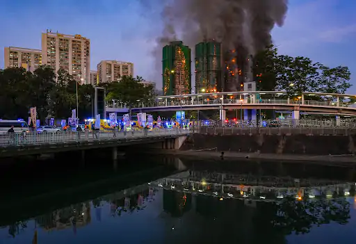 हाँगकाँगमध्ये अनेक निवासी उंच इमारती जळत आहेत.