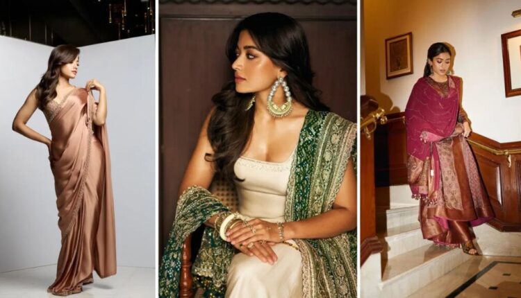 देदीप्यमान अनारकलींपासून ते वाहत्या साड्या आणि क्लिष्ट नक्षीकाम केलेल्या शरारांपर्यंत, प्रत्येक जोडणी सांस्कृतिक परिष्कृततेचे सार कॅप्चर करते आणि घरातील किंवा अर्ध-औपचारिक सेटिंग्जसाठी व्यावहारिक राहते. काळजीपूर्वक निवडलेल्या ॲक्सेसरीज आणि अधोरेखित तरीही चकचकीत मेकअप लूक पूर्ण करतात, हे सुनिश्चित करतात की प्रत्येक पोशाख समाजीकरणासाठी सोयीस्कर राहून विधान करतो. तिची शैली हे दाखवते की उत्सवातील ड्रेसिंग कसे विलासी आणि घालण्यायोग्य असू शकते, जे मुख्य रंग खेळ सुरू होण्यापूर्वी सण शैलीत साजरा करू इच्छितात त्यांना प्रेरणा देते.