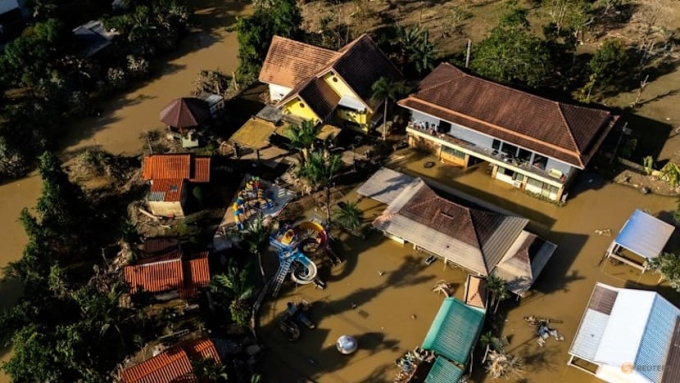 30 नोव्हेंबर 2025 रोजी दक्षिण थायलंडमधील हॅट याई जिल्ह्यात, सॉन्गखला प्रांतातील प्राणघातक पूर आल्याने ड्रोनचे दृश्य पूरग्रस्त रिसॉर्ट दाखवते. रॉयटर्सचा फोटो