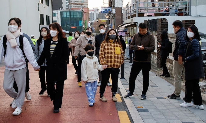 सोल, दक्षिण कोरिया, 17 नोव्हेंबर 2022 रोजी वार्षिक महाविद्यालयीन प्रवेश परीक्षांपूर्वी विद्यार्थी आणि त्यांचे कुटुंबीय एका परीक्षा हॉलसमोर चालत आहेत. रॉयटर्सचा फोटो |