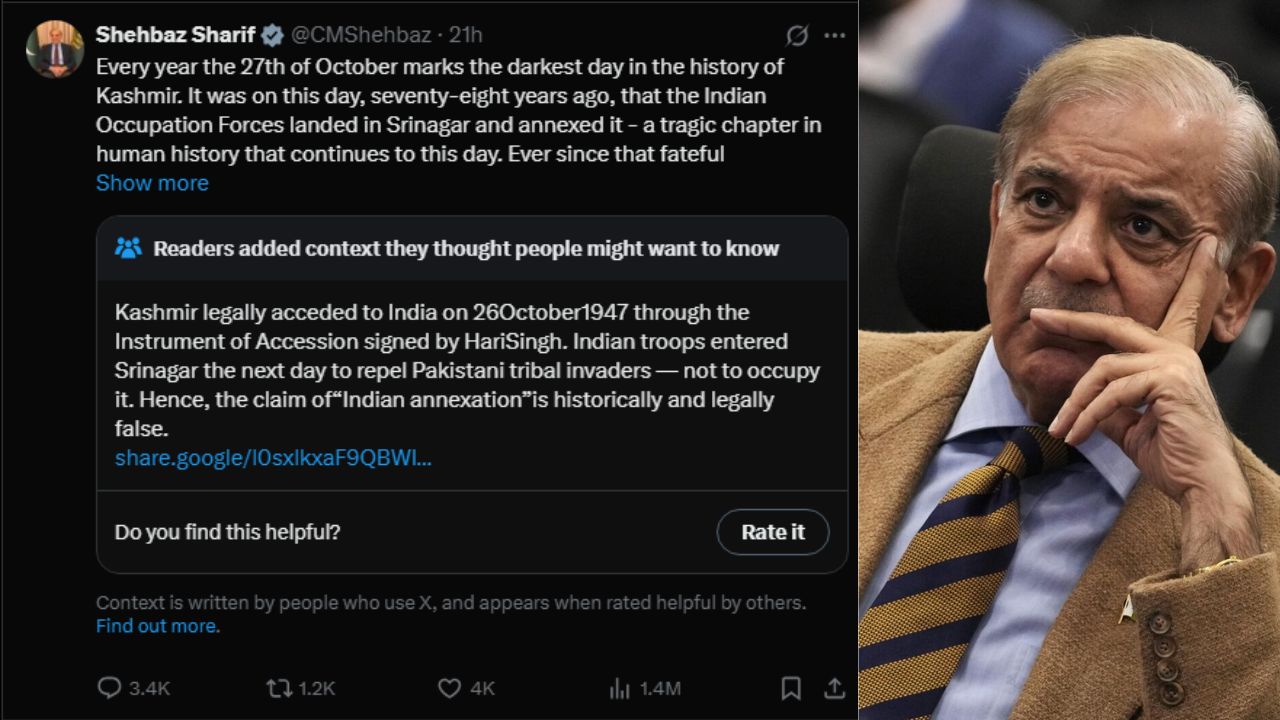 परंतु यावेळी सोशल मीडिया प्लॅटफॉर्म X च्या कम्युनिटी नोट्स टीमने शरीफ यांच्या पोस्टवर तत्काळ तथ्य-तपासणी जारी केली आणि त्यास दिशाभूल करणारी बातमी म्हणून संबोधले. फॅक्ट चेकने म्हटले आहे की, महाराजा हरि सिंह यांनी २६ ऑक्टोबर १९४७ रोजी जम्मू आणि काश्मीरचे भारतात विलीनीकरण करण्यास अधिकृतपणे सहमती दर्शवली होती. या करारानंतरच भारताने २७ ऑक्टोबर रोजी आपले सैन्य श्रीनगरला पाठवले. हे “आक्रमण” नसून कायदेशीर आणि कायदेशीर कारवाई होती.