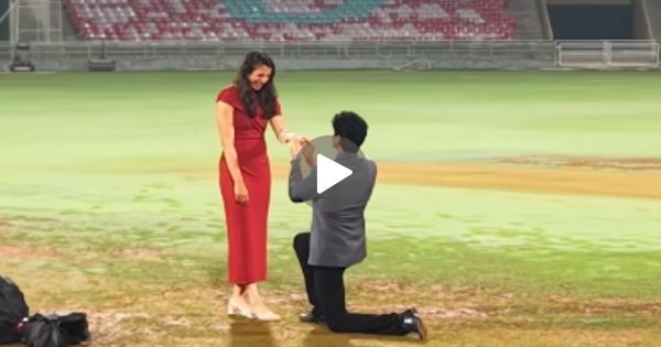 मुंबईतील डीवाय पाटील स्टेडियमवर पलाशनं स्मृतीसाठी खास सरप्राईजची तयारी केली होती. व्हिडिओच्या सुरुवातीला दोघे स्टेडियममध्ये प्रवेश करताना दिसतात, मात्र स्मृतीचे डोळे बांधलेले असून पलाश तिचा हात धरून तिला पिचकडे घेऊन येतो आणि जसेच स्मृती पट्टी काढते, तसंच समोर पलाश गुडघ्यावर बसून लाल गुलाबांचा गुच्छ देत तिला प्रपोज करताना दिसतो. त्याच क्षणी तो तिच्या हातात अंगठीही घालतो. या अचानक दिलेल्या रोमँटिक सरप्राईजने स्मृती भावूक झाली असून त्या क्षणी पलाशही काहीसा इमोशनल झाल्याचे दृश्य व्हिडिओमध्ये दिसते. हा व्हिडिओ सोशल मीडियावर शेअर होताच चाहत्यांचा लाइक्स आणि कमेंट्सचा वर्षाव सुरू झाला आहे.