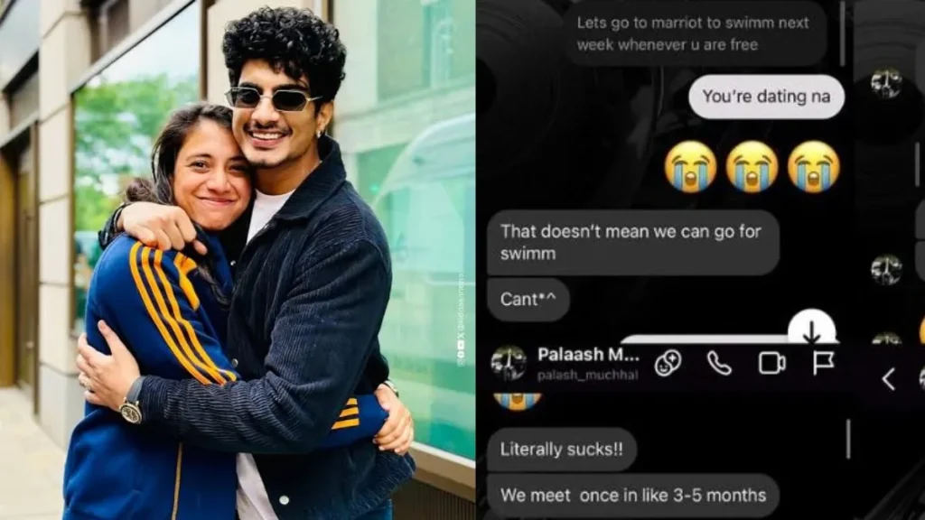 सर्वात वरती, पलाश मुच्छाल आणि एका अनोळखी महिलेमधील कथित फ्लर्टी डायरेक्ट मेसेज दाखवणारे स्क्रीनशॉट सोशल मीडियावर समोर आल्यानंतर इंटरनेटवर खळबळ उडाली. केवळ टोपणनावाने ओळखल्या जाणाऱ्या महिलेने चॅट खऱ्या असल्याचा दावा करून वादाला तोंड फोडले. एका मेसेजमध्ये, पलाशने स्मृतीसोबतचे नाते डळमळीत जमिनीवर असल्याचे कबूल केले आणि ते “बहुतेक वेळा मृत” असे म्हटले.
