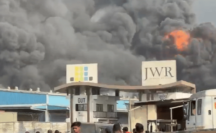 पनवेल मधील पाडेघर नजीकच्या पळस्पे जेएनपीए राष्ट्रीय महामार्गावरील जे डब्ल्यू आर या गोदामाला दुपारी आग लागली आहे. ही आग अति घातक व ज्वलनशील रसायनाच्या पिंपाना लागली असल्याचे बोलले जात आहे. त्यामुळे ही रसायने पेटून झालेल्या स्फोटाने परिसरात आगीचे डोम पसरू लागले आहेत.