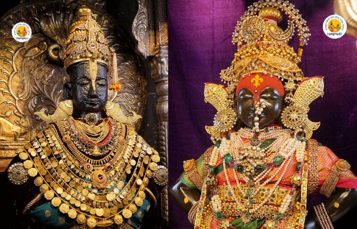 श्री विठ्ठलास सोन्याचा मुकुट, नाम हिऱ्याचा, मोत्याचा तुरा, कौस्तुभ मणी, दंड पेट्या जोड मोठा, हिऱ्याचा कंगण जोड, शिरपेच लहान, शिरपेच १० लोलक असलेला, मस्त्य जोड, तुळशीची माळ ३ पदरी, मोहन माळ ५ पदरी, हायकोल, सूर्यकाळ्यांचा हार, तांदळ्या हार ७ पदरी, पुतळ्यांची माळ, मोहरांची माळ, पदकासह लॉकेट, तुळशीची माळ १ पदरी, लक्ष्मी पदक लॉकेट, तोडे जोड, झनक झनक हार, सोन्याचे पैंजण जोड, नवरत्नाचा हार, सोन्याचे पितांबर इ. अलंकार परिधान करण्यात आलेले आहेत.