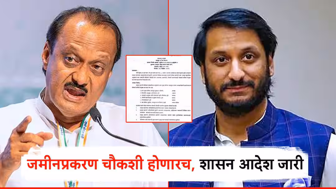 पार्थ पवार (Parth Pawar) यांच्या कंपनीने खरेदी केलेल्या जमीन व्यवहार प्रकरणी सविस्तर चौकशीच्या अनुषंगाने, अपर मुख्य सचिव (महसूल) यांच्या अध्यक्षतेखाली खालीलप्रमाणे चौकशी समिती नियुक्त करण्यात येत आहे, असे शासन आदेशात म्हटले आहे. तसेच, अध्यक्षांसह 6 जणांचा या समितीत समावेश असणार असून त्यामध्ये विभागीय आयुक्त आणि पुण्याचे जिल्हाधिकारी देखील चौकशी करणार आहेत. दरम्यान, पार्थ पवार यांच्याकडून सदरील जमिनीचा व्यवहार रद्द करण्यात येणार असून ती जमीन शासनाला परत दिली जाईल, अशी सूत्रांची माहिती आहे. मात्र, चौकशी समितीकडून संबंधित प्रकरणात ज्या अधिकारी व कर्मचाऱ्यांनी काळाबाजार केला त्यांच्यावर कारवाई होणार आहे.