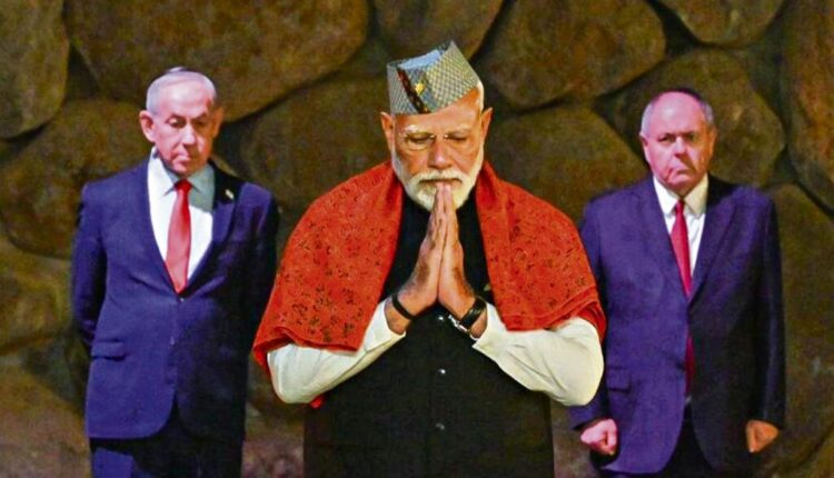 पंतप्रधान नरेंद्र मोदी यांनी गुरुवारी इस्रायलमधील जेरुसलेम येथील याड वाशेम, वर्ल्ड होलोकॉस्ट रिमेंबरन्स सेंटर येथे होलोकॉस्टमधील पीडितांना श्रद्धांजली वाहिली. फोटो: IANS