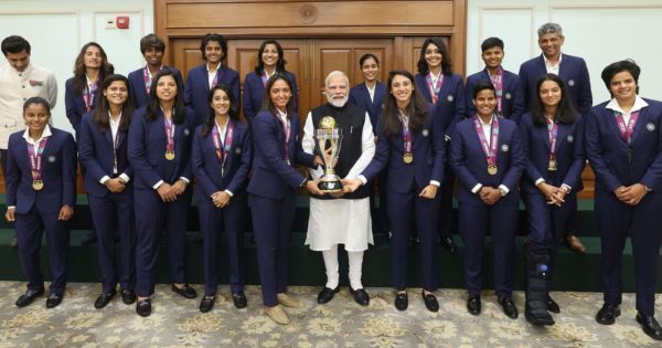 पंतप्रधानांनी अमनजोत कौरच्या प्रसिद्ध कॅचचीही आठवण केली, जी त्यांनी काही वेळा फंबल केल्यानंतर घेतली होती. त्यांनी सांगितले की हा असा फंबल आहे जो पाहायला आवडतो. पंतप्रधान म्हणाले, “कॅच करताना तुम्हाला फक्त बॉल दिसेल, पण कॅच झाल्यानंतर तुम्हाला ट्रॉफी दिसेल.”