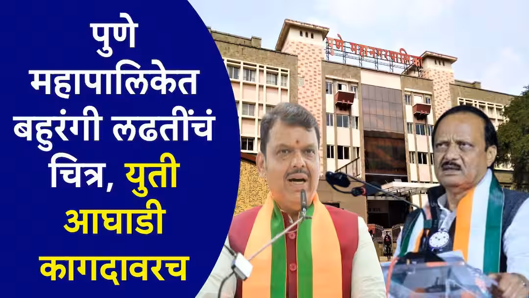 पुणे : पुणे महापालिका निवडणुकीत उमेदवारी अर्ज दाखल करेपर्यंत भाज आणि शिवेसना यांच्यातील जागा वाटपाची चर्चा सुरुच राहिलेली. दुसरीकडे अजित पवारांची राष्ट्रवादी काँग्रेस आणि शरद पवारांची राष्ट्रवादी काँग्रेस यांच्यात आघाडी होणार असं नेत्यांनी सांगितलं तरी प्रत्यक्षात चित्र वेगळंच दिसायला मिळत आहे. पुण्यात भाजप विरुद्ध एकनाथ शिंदेंची शिवसेना विरुद्ध अजित पवारांची राष्ट्रवादी काँग्रेस विरुद्ध राष्ट्रवादी काँग्रेस पार्टी शरदचंद्र पवार पक्ष विरुद्ध महाविकास आघाडीतील काँग्रेस, शिवेसना उद्धव बाळासाहेब ठाकरे पक्ष आणि वंचित असं चित्र आहे. म्हणजेच पुण्यात थेट दोन आघाड्यांमध्ये निवडणूक होणार नसून बहुरंगी लढती होणार आहेत.