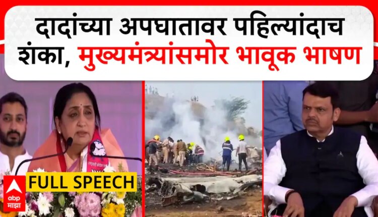 Sunetra Pawar Speech Baramati : दादांच्या अपघातावर पहिल्यांदाच शंका, मुख्यमंत्र्यांसमोर भावूक भाषण