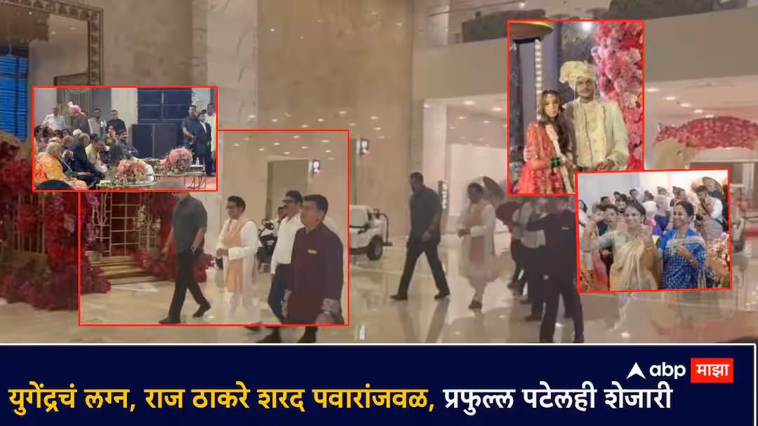 विशेष म्हणजे अजित पवारांच्या राष्ट्रवादीचे नेते प्रफुल्ल पटेल हेही शरद पवारांच्या शेजारीच बसल्याचं दिसून आलं. एकंदरीत युगेंद्र पवार यांच्या लग्नाच्या निमित्ताने दिग्गजांची मांदियाळी जमली होती.
