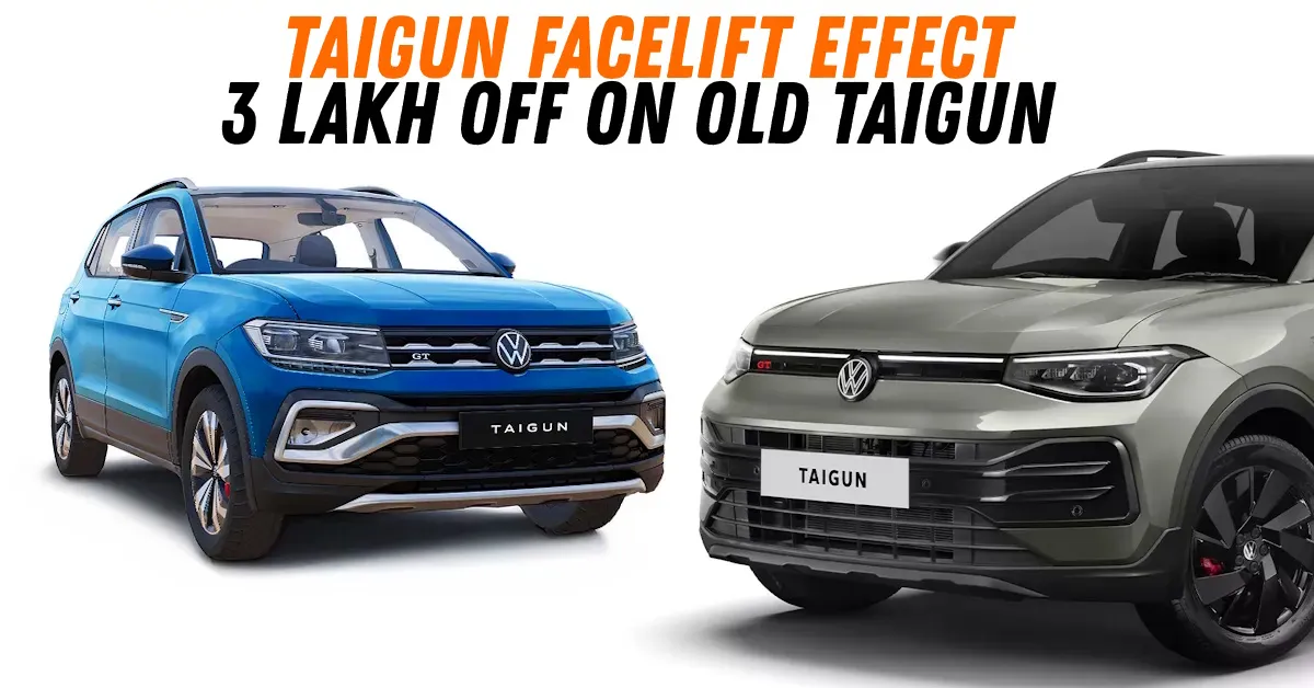 फोक्सवॅगनने नुकतेच तैगनच्या फेसलिफ्टेड व्हर्जनचे बाजारात अनावरण केले. हे अनेक कॉस्मेटिक तसेच वैशिष्ट्य अद्यतनांसह येते. अद्ययावत Taigun चे अनावरण केले गेले असताना, प्री-फेसलिफ्ट आवृत्त्या अजूनही डीलरशिपवर उपलब्ध आहेत आणि त्यापैकी बरेच नवीन मॉडेल येण्यापूर्वी जुन्या मॉडेलवर सूट देत आहेत.