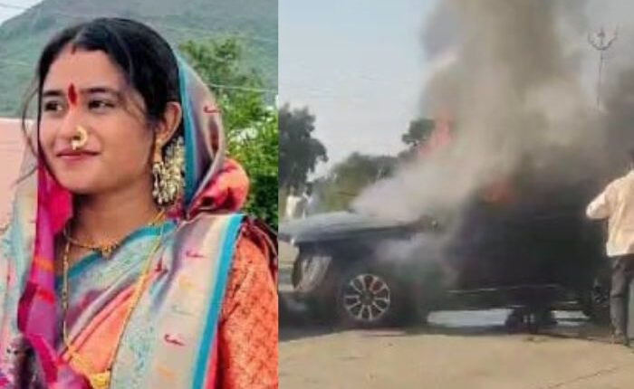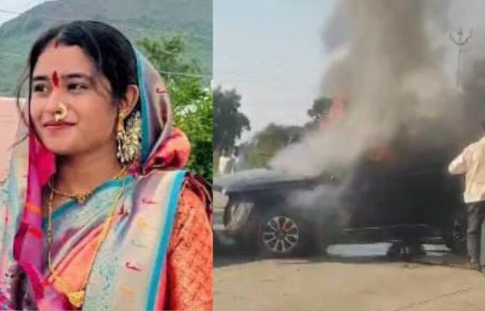 भुसावळ तालुक्यातील बोहर्डी येथील माहेरून जान्हवी पतीसोबत कारने छत्रपती संभाजी नगरकडे घरी परतत होती. यादरम्यान पिंपळगाव फाटा येथे त्यांच्या कार अनियंत्रित होऊन दुभाजकावर धडकली. यानंतर कारने पेट घेतला. आसपासच्या नागरिकांनी तात्काळ धाव घेत गाडीच्या काचा फोडून पतीला बाहेर काढले. नागरिकांनी पत्नीलाही बाहेर काढण्याचा प्रयत्न केला, मात्र तोपर्यंत गाडीने पेट घेतला. या आगीत जान्हवीचा होरपळून मृत्यू झाला.