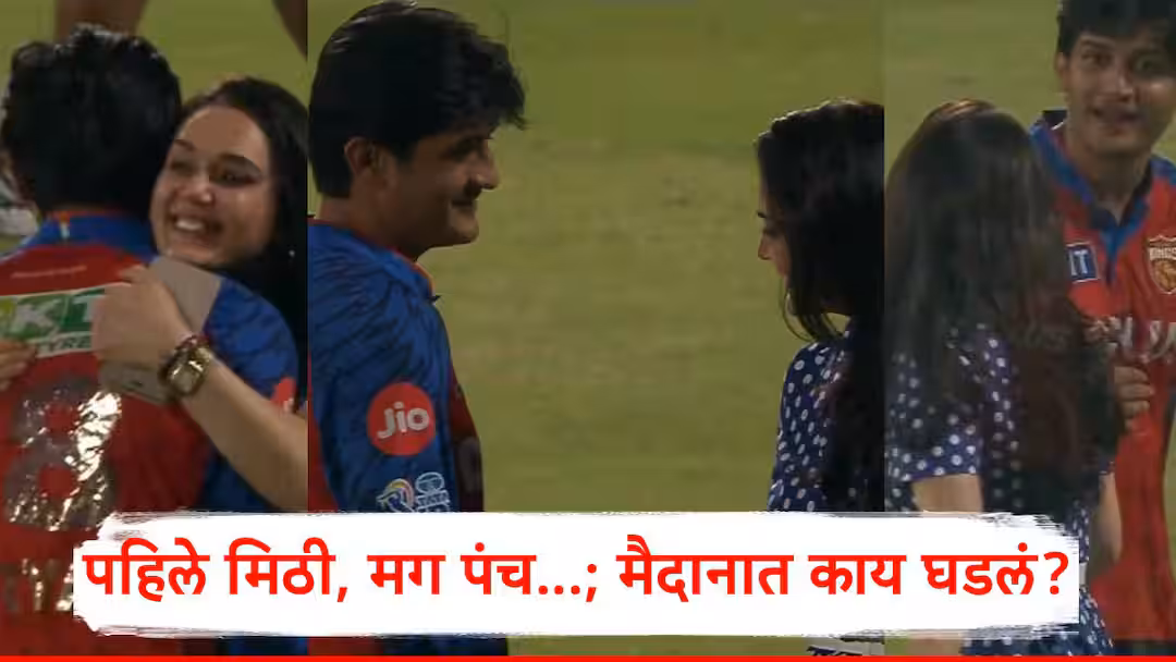 दिल्ली कॅपिट्सविरुद्ध पंजाब किंग्सने सामना जिंकल्यानंतर संघाची मालकीण आणि अभिनेत्री प्रीती झिंटा खूप आनंदी दिसली. सामना संपल्यानंतर प्रीती झिंटा मैदानात आली आणि पंजाबच्या खेळाडूंना भेटली. यादरम्यान, प्रीती झिंटाने प्रियांश आर्याला (Preity Zinta And Priyansh Arya) मिठी मारली. तसेच प्रेमाने पोटावर एक बुक्काही मारला. प्रीतीच्या या बुक्क्यानंतर प्रियांना आर्याने दिलेल्या रिअॅक्शन सध्या सोशल मीडियावर व्हायरल होत आहे. प्रीती झिंटाने नकळत पोटावर बुक्का देताच मॅडम, जोर से लगा…असं प्रियांश आर्या म्हणाला.