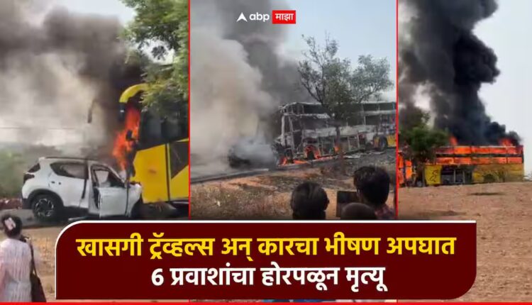 खासगी ट्रॅव्हल्स अन् कारचा भीषण अपघात; देवदर्शनाहून परतणाऱ्या 6 प्रवाशांचा होरपळून मृत्यू
