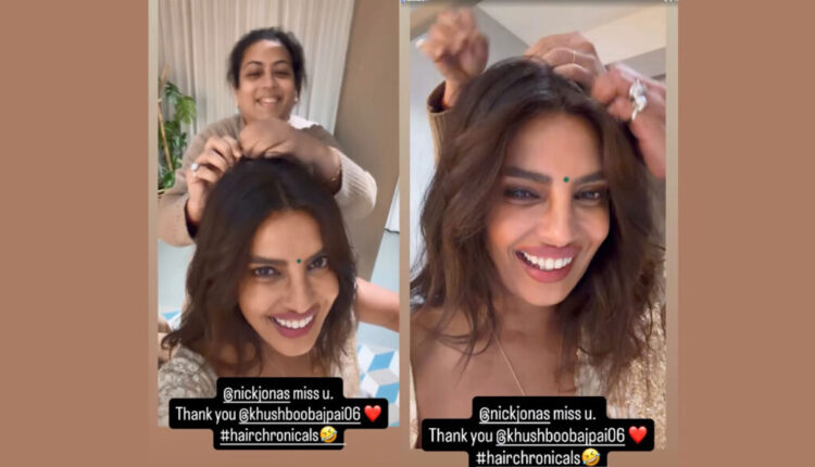पती निकसाठी तिची तळमळ व्यक्त करताना प्रियांकाने पोस्टला कॅप्शन दिले, “@nickjonas miss u. धन्यवाद @khushboobajpai06 (रेड हार्ट इमोजी) #hairchronicals (रडवलेल्या चेहऱ्याने हसणारा इमोजी).”
