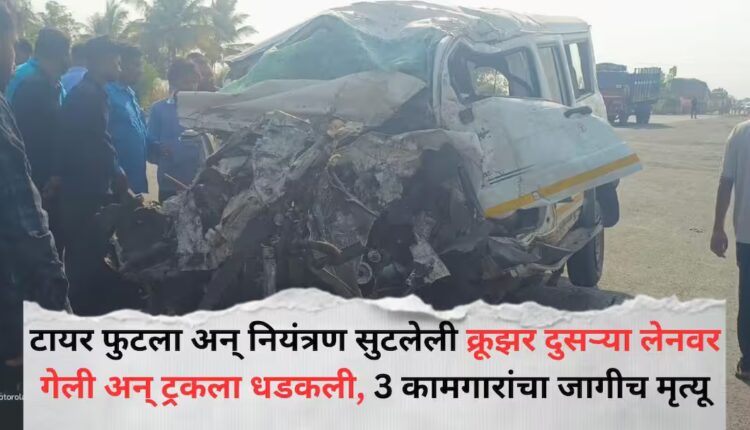 Accident News: टायर फुटलं अन् नियंत्रण सुटलेली क्रूझर थेट दुसऱ्या लेनवर गेली, ट्रकला धडकली, 3 कामगारांचा जागीच मृत्यू, थरारक अपघाताचे फोटो समोर