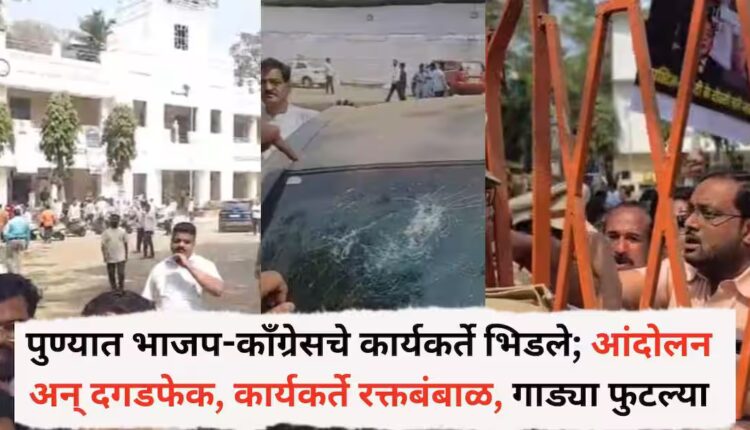 पुण्यात भाजप-काँग्रेसचे कार्यकर्ते भिडले; आंदोलन अन् दगडफेक, कार्यकर्ते रक्तबंबाळ, गाड्या फुटल्या, आता काँग्रेसही आक्रमक