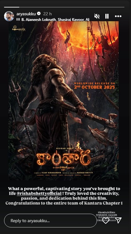 कृपया सांगा की सुकुमारने त्याच्या सोशल मीडिया हँडलवर भावनिक संदेश सामायिक केला. त्यांनी आपल्या पोस्टमध्ये लिहिले आहे- “तुम्ही प्रभावी आणि विहंगम कथा जिवंत आणली आहे @rishabshettyOfficial! मला या चित्रपटामागील सर्जनशीलता, आवड आणि समर्पण खरोखरच आवडले.