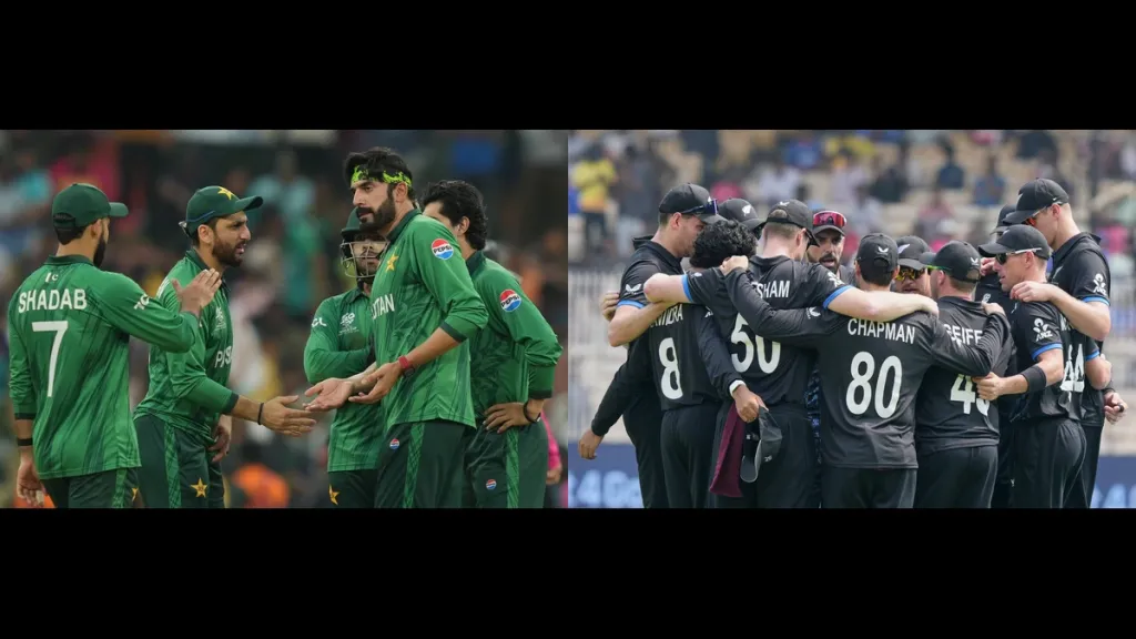 पाकिस्तानविरुद्धच्या सामन्यासाठी न्यूझीलंडची संभाव्य इलेव्हन: फिन ऍलन, टिम सेफर्ट (विकेटकीपर), रचिन रवींद्र, ग्लेन फिलिप्स, डॅरिल मिशेल, मायकेल ब्रेसवेल, मार्क चॅपमन, मिचेल सँटनर (सी), जेकब डफी, ईश सोधी, मॅट हेन्री.