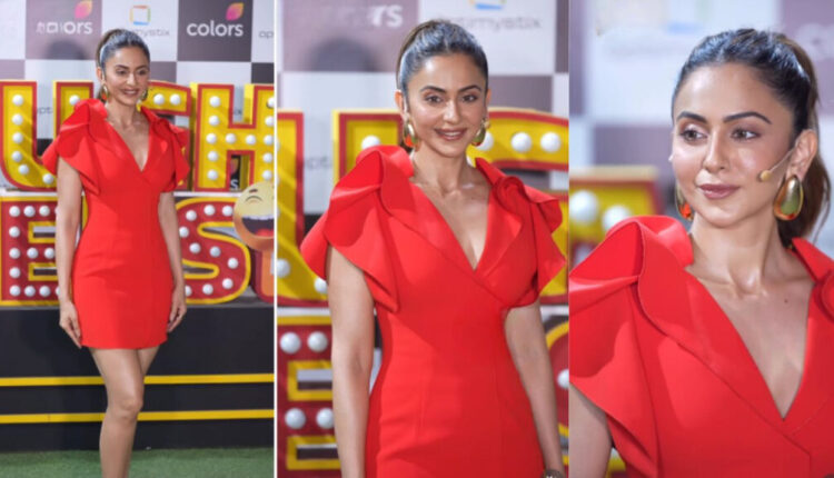 टीव्ही शो लाफ्टर शेफच्या सेटवर चित्रपटाच्या प्रमोशनदरम्यान रकुल प्रीत सिंगने पुन्हा एकदा तिच्या स्टाईलने सर्वांचे लक्ष वेधून घेतले. ₹ 37,542 किमतीच्या लाल मिनी ड्रेसमध्ये अभिनेत्री एकदम किलर दिसत होती, जे पाहून चाहत्यांच्या हृदयाचे ठोके काही क्षणांसाठी थांबले.