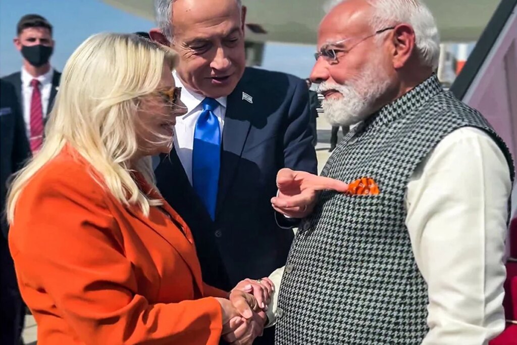 इस्रायलचे पंतप्रधान बेंजामिन नेतन्याहू आणि त्यांची पत्नी सारा नेतन्याहू यांनी पंतप्रधान नरेंद्र मोदींचे विमानतळावर स्वागत केले.