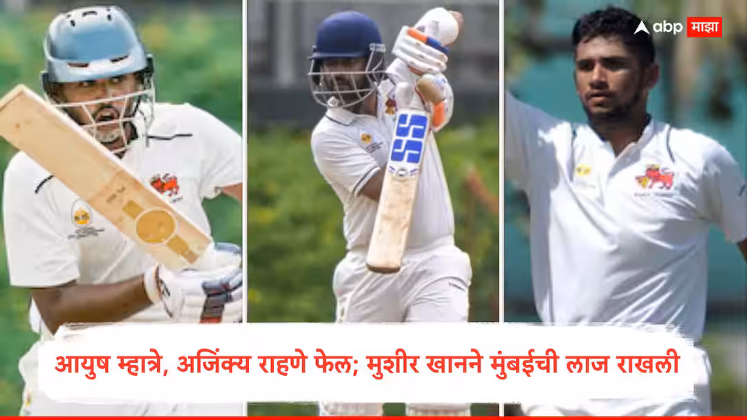 आयुष म्हात्रे 9, अजिंक्य राहणे 2, सरफराज खानही फेल! मुशीर खानने मुंबईची लाज राखली, ठोकले शतक