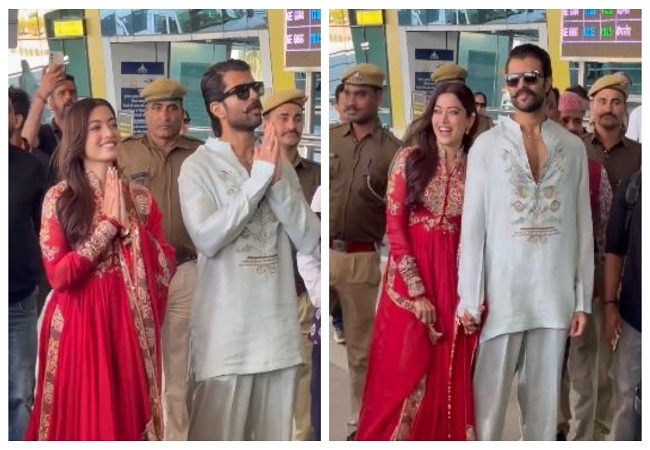 मुंबई नवविवाहित जोडपे विजय देवरकोंडा आणि रश्मिका मंदान्ना शुक्रवारी त्यांच्या चाहत्यांना भेटण्यासाठी उदयपूर विमानतळावर पोहोचले. गुरुवारी उदयपूरमध्ये कुटुंबीय आणि जवळच्या मित्रांच्या उपस्थितीत विवाहबद्ध झालेल्या या स्टार जोडप्याने पहिल्यांदाच विमानतळावर सार्वजनिकपणे आपली उपस्थिती दर्शवली. रश्मिकाने लाल ड्रेस घातलेला दिसला, तर देवराकोंडाने कुर्ता पायजमा घातला आणि सनग्लासेस घातले. हे जोडपे चाहत्यांना फ्लाइंग किस्स पाठवताना दिसले.