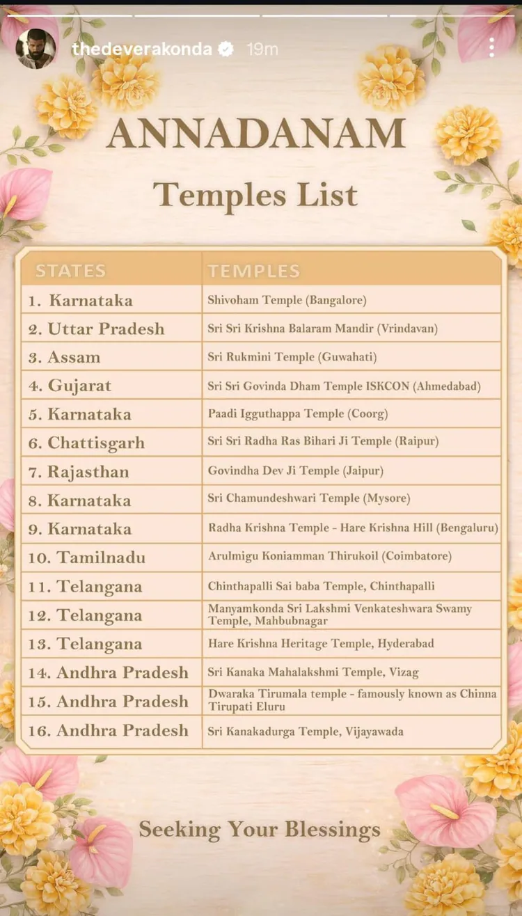 रश्मिका आणि विजय यांच्यासाठी, त्यांच्या लग्नाच्या सोहळ्यांसोबत अन्नदानम एकत्र केल्याने त्यांच्या मोठ्या दिवसाला एक आध्यात्मिक आणि उदार स्तर जोडला जातो. तेलंगणा, आंध्र प्रदेश, कर्नाटक, तामिळनाडू आणि केरळ यांसारख्या राज्यांमधील अनेक मंदिरे निवडून, ते त्यांचा वैयक्तिक आनंद सामूहिक श्रद्धा आणि सामुदायिक कल्याणाशी जोडत आहेत. हा दृष्टीकोन चाहत्यांमध्ये जोरदारपणे प्रतिध्वनित होतो जे जोडप्याला केवळ तारे म्हणून पाहत नाहीत, तर तरुण प्रभावकार म्हणून त्यांचे व्यासपीठ ग्लॅमरपेक्षा मोठ्या गोष्टीसाठी वापरतात.